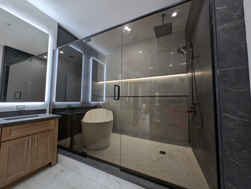 Sun Shower Styles provides a custom, unique flair to your any room in your home with glass creations. We specialize in custom glass enclosures, but we can also help you create other glass or mirror designs. Whether your project is for a newly constructed home or a remodel, we can help you achieve the high end professional look you desire.  We are located in Debary FL and service the Central Florida area.